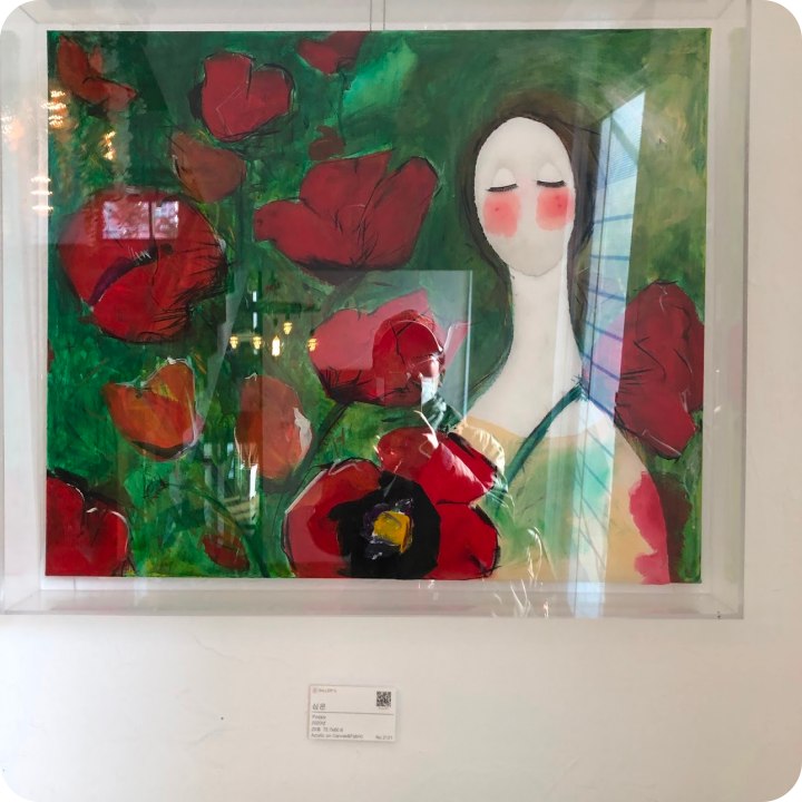 위 전시 중인 그림은 2층에 올라가는 계단에 있었는데요 빵과 커피를 가지고 올라갈 때는 몰라 봤습니다. 다른 그림은 2층에 있었고 층층마다 모두 그림이 있었고 모두 다른 분들의 작품들이 걸려 있었습니다.